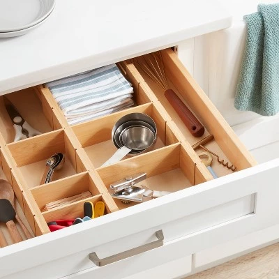 Get the most out of your kitchen drawer space with this 4-Pack of Bamboo Expandable Drawer Dividers from Brightroom™. Made from bamboo, these drawer dividers feature a sleek design with small cutouts to adjust the sections to your needs. Best of all, they feature an expandable design that allows you to increase their length according to your drawer space.